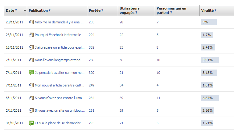 Facebook nous donne des données précieuses pour chacun de nos statuts: que ce soit un statut texte, article, question, photo ou vidéo.